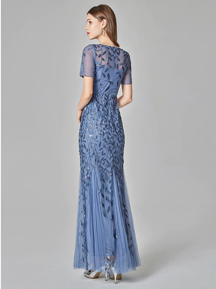 Avantages de la robe Gatsby bleue vintage longue